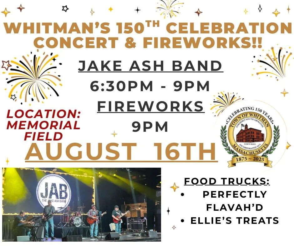Whitman 150 Concert and Fire Works delayed until August 16: https://www.facebook.com/share/p/1Zt8MwE2ij/